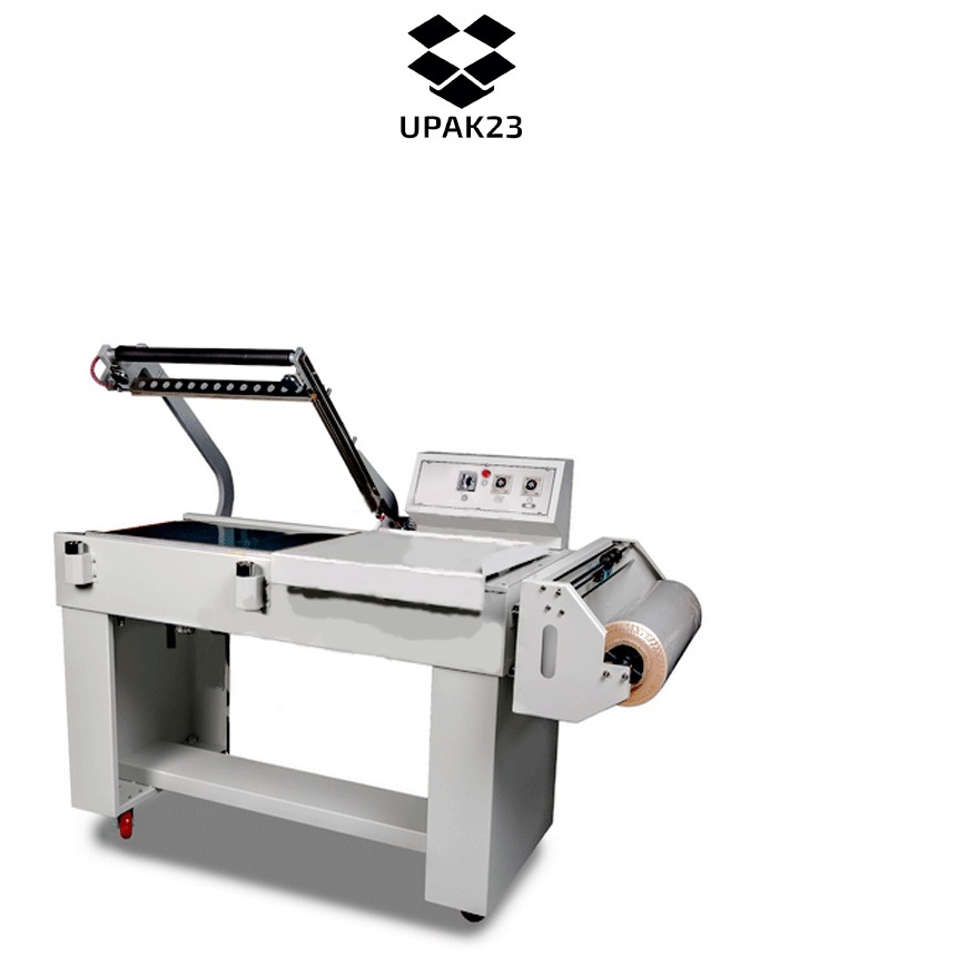 Нож для запайки и обрезки с L-образным запаечным ножом используется для упаковки товаров в термоусадочную плёнку, который в дальнейшем отправляется в термоусадочный тоннель для усадки плёнки.