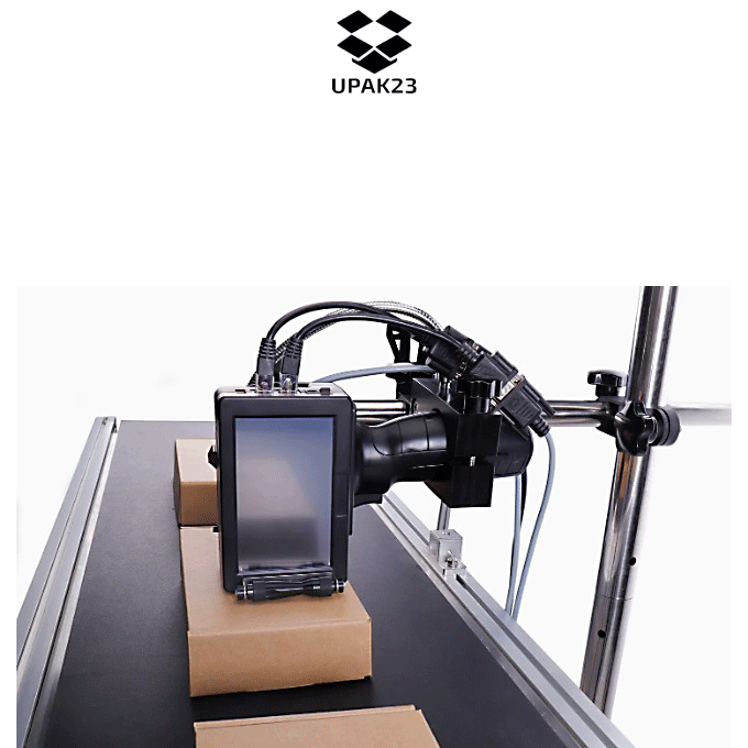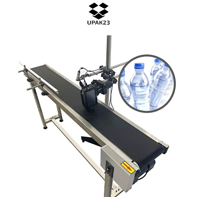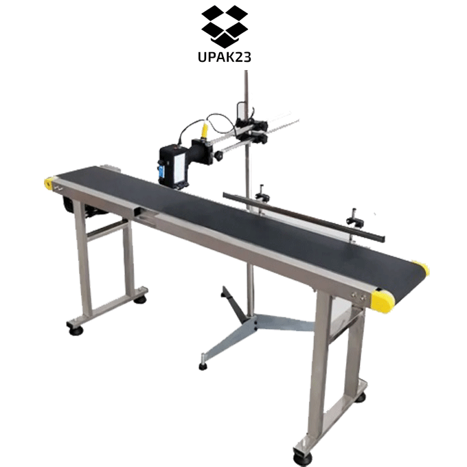 Маркиратор с конвейером и датчиком определения тары используется для нанесения маркировки (даты/QR-кода и т.д) на горизонтальной поверхности тары/изделия.