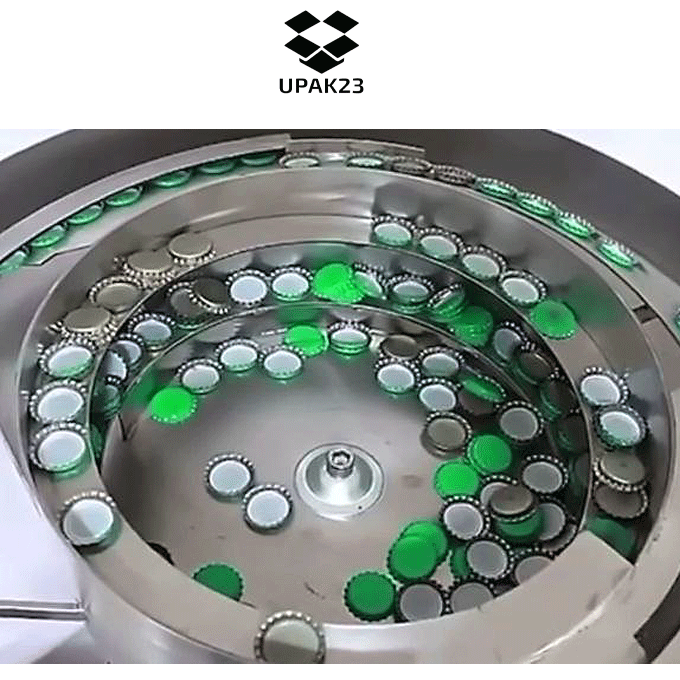 Тара поступает на роторную подачу, где первой ступенью поступает кронен-крышка, далее - автоматически происходит опускание укупорочной головки .