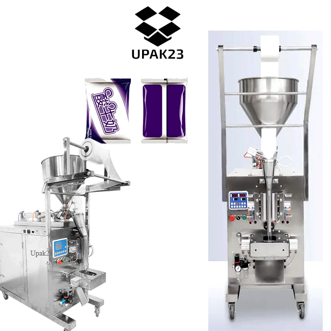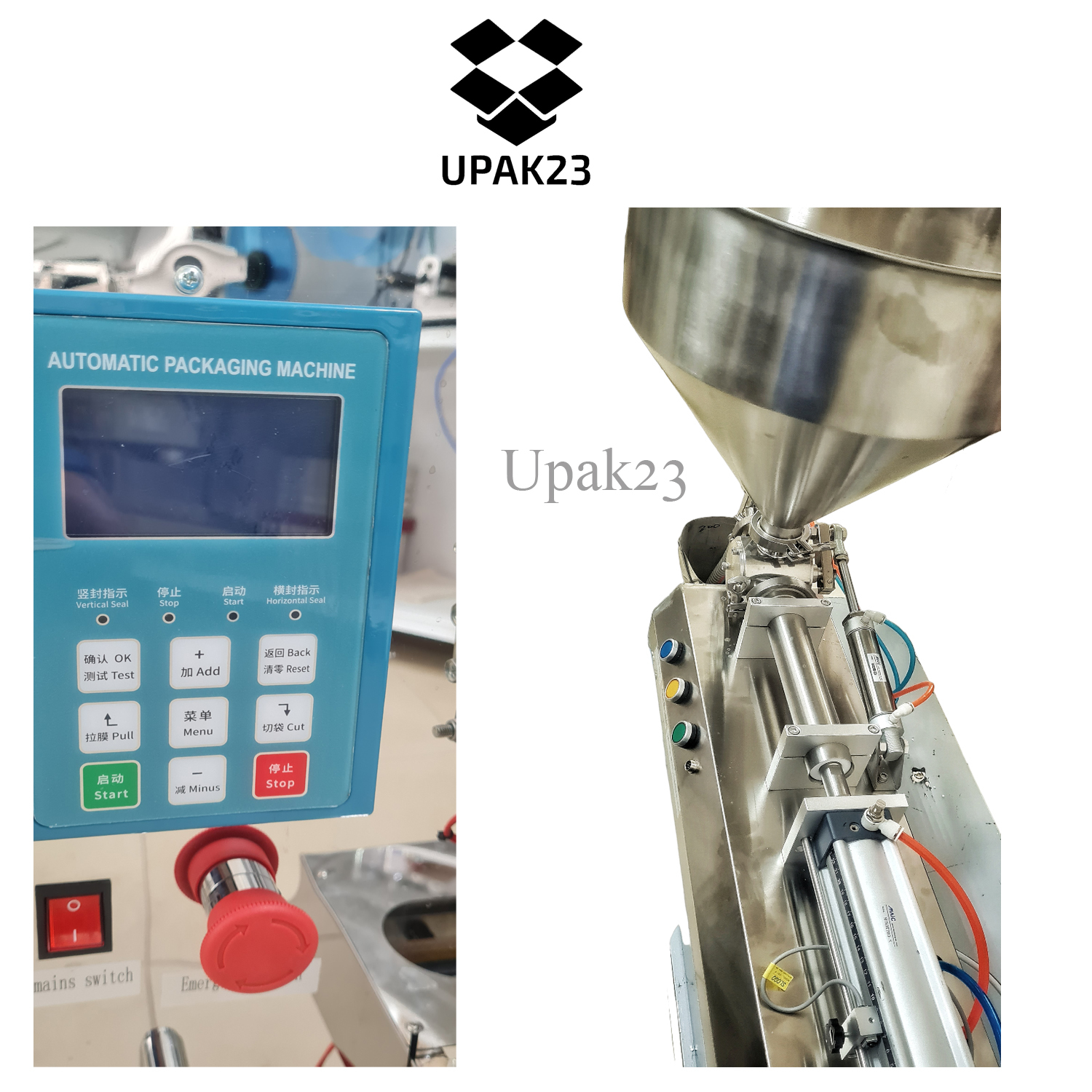 Вертикальный фасовочно-упаковочный автомат состоит из двух частей: поршневого дозатора и упаковочного автомата с формирователем пленки. Предназначен для розлива и упаковки густых жидких пищевых и не пищевых продуктов в трехшовный пакет-подушка (стик).