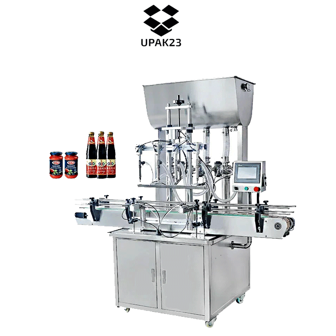 Автоматическая разливочная машина (узел розлива) напольного типа непрерывного дозирования поршневым дозатором с 4-мя разливочными соплами. Применяется для дозировки густых, вязких и труднодозируемых веществ в готовую тару/банки.