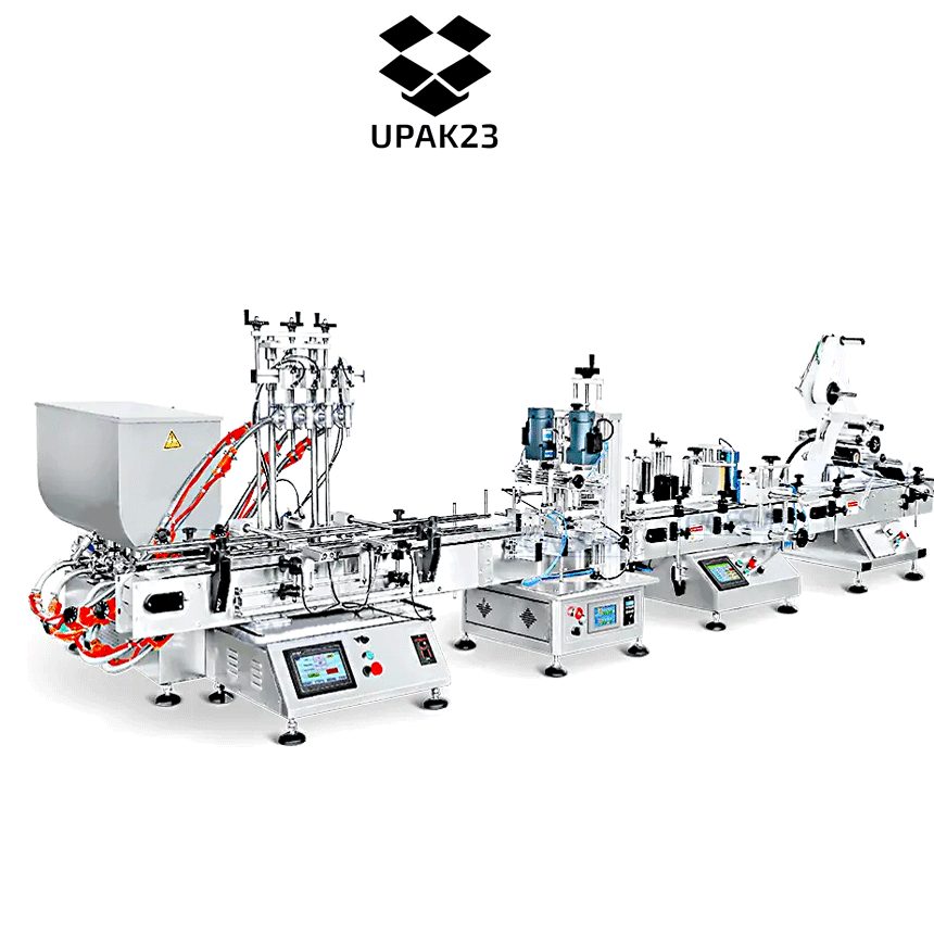 Автомат розлива (на 4-е разливочных сопла) непрерывного действия с перемешиванием и функцией опускания сопел, а так же конвейерной лентой применяются для дозировки густых веществ или веществ с "кусочками" в тару.